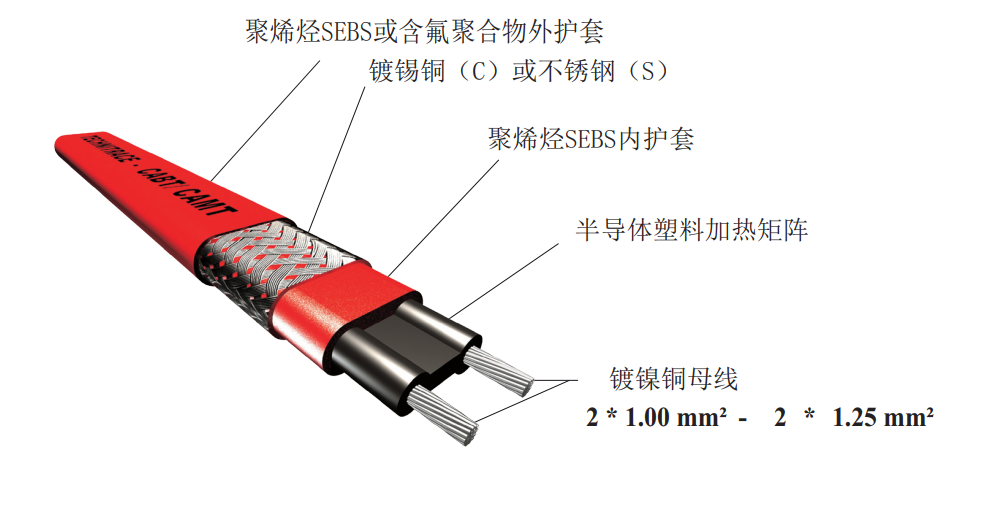 低温自调控电伴热带CABT及CABT/EX自调控伴热带可根据环境温度自动调节输出功率。